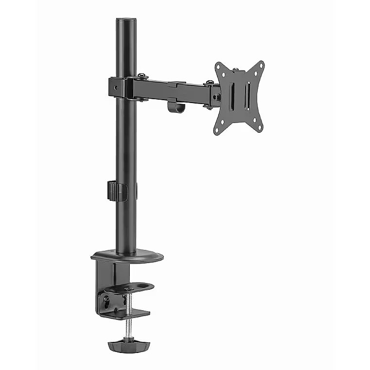 Description - Desk mounted single monitor arm, 17”-32” Position your screen perfectly for an optimal ergonomic position Compact space saving solution Monitor desk mount with single monitor arm Allows to swivel tilt, pull forward and retract your display and enables rotating the display from landscape-to-portrait mode Works with almost any LCD monitor (max. 32" / 9 kg) Strong desk clamp or grommet for easy and secure fixation on your desk Built-in cable management for an organized and neat workspace VESA compatible (100 x 100 mm and 75 x 75 mm)