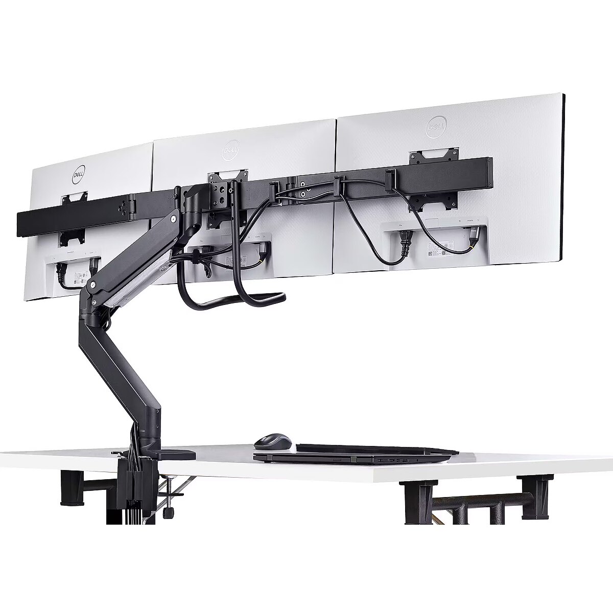 ProductName - Crossbar Triple Monitor Desk Mount For Up To Three 27in Screens, VESA 75x75/100x100, Tool-Less Arm Adjustments, C-Clamp/Grommet, Spring-Assisted Arm