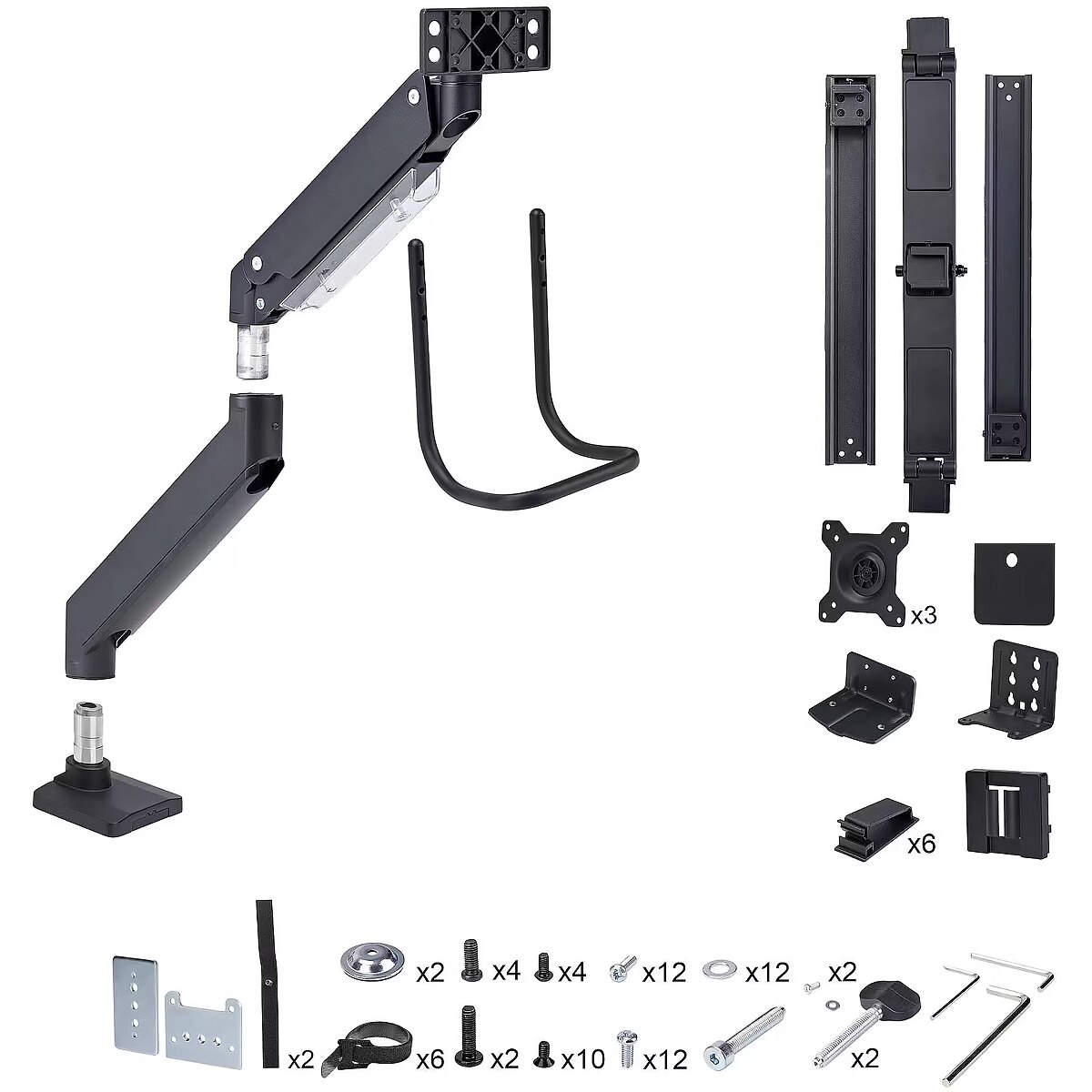 Nosaukums - StarTech.com Crossbar trīs monitoru galda stiprinājums līdz pat trim 27 collu ekrāniem, VESA 75x75/100x100, rokas regulēšana bez instrumentiem, C-veida skava/caurlaidis, atsperu atbalstīta roka