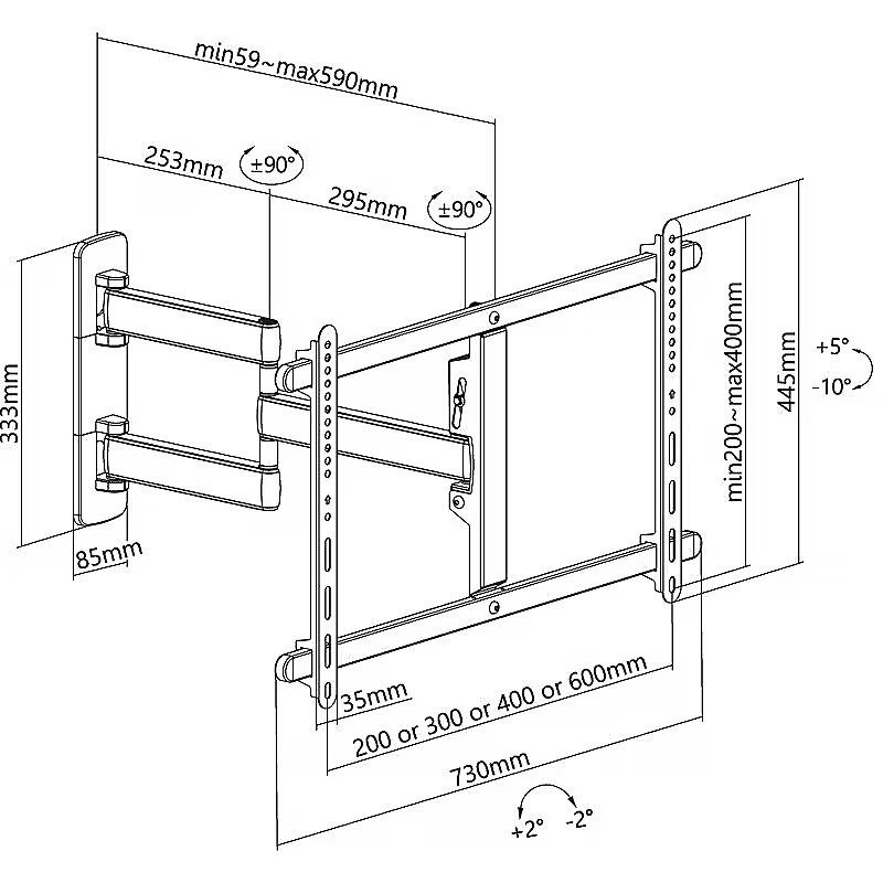VESA atbalsts : 200 x 200, 200 x 300, 200 x 400, 300 x 200, 300 x 300, 300 x 400, 400 x 200, 400 x 300, 400 x 400, 600 x 400