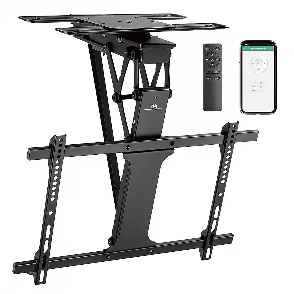 Accessories included - Maclean MC-490 electric ceiling TV mount Remote control Mounting accessories Set of mounting screws Mounting instructions Manufacturer's packaging