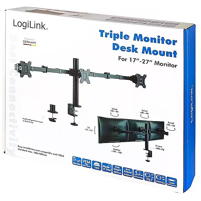 Logilink BP0107 Triple monitor mount 17-27inch arm length adjustable