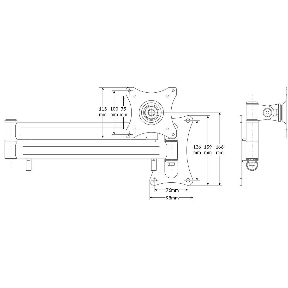 Description - LCD Swing Arm Wall Mount Adjustable wall extension from 108 to 792 mm Increased flexibility of 3 axis of rotation 360° rotation for portrait or horizontal screen option Under arm cable management