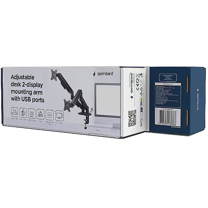 productName - Gembird MA-DA2U-01 Regulējama galda 2 displeju stiprinājuma rokas ar USB pieslēgvietām, 17"-32", melns
