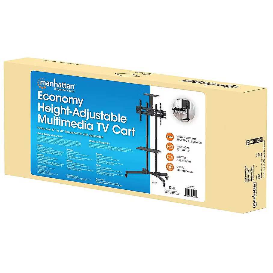ShortSummaryDescription - Manhattan Trolley Mount Stand for TV & Monitors, For screens 37" to 65", VESA compatability: all between 200x200 to 600x400mm - check the dimensions of the four mounting holes on back of screen to ensure it fits, Max 40kg, Black, LFD, Bracket, Lifetime Warranty, 50 kg, 94 cm (37"), 177.8 cm (70"), 600 x 400 mm, Height adjustment, Black