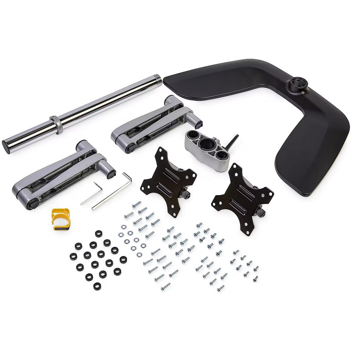 LongDesc - Darbvirsmas monitoru statīvs | Regulējams augstums | Līdz 32" monitoriemPielāgojiet savu darba vietu un atbrīvojiet vietu, izmantojot šo divu monitoru statīvu. Uzstādiet divus monitorus uz diviem šarnīrveida monitora balstiem un pielāgojiet displejus optimālai skatīšanai, izmantojot plašu kustību diapazonu. Brīvi stāvošais statīvs nodrošina elastīgu iestatījumu izvietošanu darba telpā.Apstipriniet savu produktivitātiDarbošanās ir efektīvāka, izmantojot divu monitoru iestatījumu. Horizontālais divu monitoru statīvs ļauj uzstādīt divus monitorus ar VESA stiprinājumu (75x75, 100x100 mm), līdz 32 collu izmēram; katra monitora maksimālā kravnesība ir līdz 17,6 lb./8 kg.Izveidojiet ergonomiskāku darba vietuUzstādot displejus uz divu monitoru statīva virs galda virsmas, varat regulēt displeja augstumu, novietojumu un skatīšanās leņķus, nodrošinot ergonomisku darba vietu. Grozāmie rokturi nodrošina maksimālu skatīšanās elastību, ļaujot jums strādāt ērti.Ieregulējams monitoru statīvsIr viegli pielāgot iestatījumus, novietojot monitorus ideālā augstumā. Vienkārši noregulējiet displeja augstumu gar 16,7" (42,4 cm) statni. Ar mikroregulēšanas funkcijas palīdzību varat perfekti izlīdzināt monitorus.Izbaudiet optimālu skatījumuIzstiepiet dubulto šarnīrveida stiprinājumu līdz 18,4" (46,8 cm), lai novietotu monitorus ideālā pozīcijā. Nolieciet monitorus +90/-40 grādu leņķī un pagrieziet +90/-90 grādu leņķī, lai nodrošinātu ideālu skatījumu. Pagrieziet displejus, lai tos skatītu portretā vai horizontāli.Nepalaida kabeļus redzamajā vietāKabeļu vadības kanāli ļauj ērti novirzīt kabeļus, lai tie nebūtu redzami.ARMDUALSS nodrošina StarTech.com 5 gadu garantiju un bezmaksas tehnisko atbalstu visu mūžu.The StarTech.com Advantage