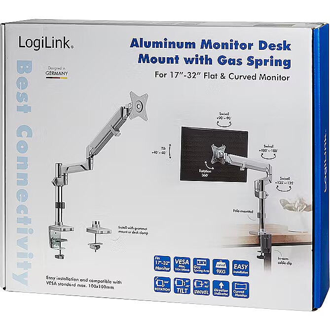 Name - Logilink | Desk Mount | Tilt, swivel, level adjustment, rotate | 17-32 " | Maximum weight (capacity) 9 kg | Aluminum