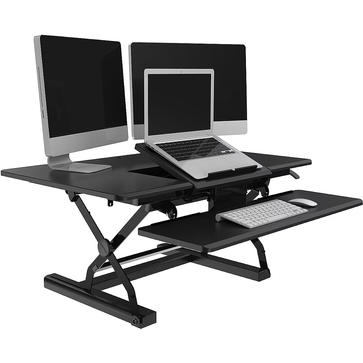 LongProductName - V7 Sit Stand Desk Workstation 36" Wide, Height Adjustable Keyboard Tray 5 to 17 Inches Gas Spring, up to 32" Display