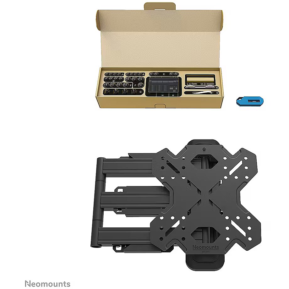 Apraksts - Neomounts by Newstar Select tv sienas stiprinājums Pilnpiedziņas sienas stiprinājums 32-55" ekrāniem - melns Neomounts Select WL40S-850BL12 ir pilnpiedziņas sienas stiprinājums līdz 55" plakaniem ekrāniem ar maksimālo svaru līdz 40 kg. Daudzpusīgā slīpuma (14°) un pagrieziena (60°) tehnoloģija ļauj izveidot optimālu skatīšanās leņķi. Lai nodrošinātu perfektu uzstādīšanu, stiprinājumu var izlīdzināt. WL40S-850BL12 dziļums ir 4,7-55,5 cm, un tas ir piemērots ekrāniem, kas atbilst VESA caurumu paraugam no 100x100 līdz 200x200 mm. Stiprinājumam ir atjautīga Easy-release sistēma, kas ļauj piestiprināt televizoru acumirklī. Sienas stiprinājumam ir pievienots atsevišķs līmeņrādis, kā arī stiprinājuma šablons, lai nodrošinātu vieglu stiprinājuma uzstādīšanu. Stiprinājums ir aprīkots ar augstas kvalitātes tērauda kabeļu vadību, lai nostiprinātu visus vaļējos kabeļus ekrāna aizmugurē.