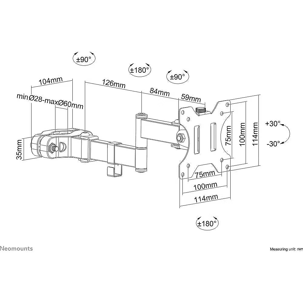 Description - NEOMOUNTS BY NEWSTAR SCREEN POLE CLAMP/TRUSS MOUNT 3 PIVOTS VESA 100X100 (POLE DIAMETER 28-60 MM)
