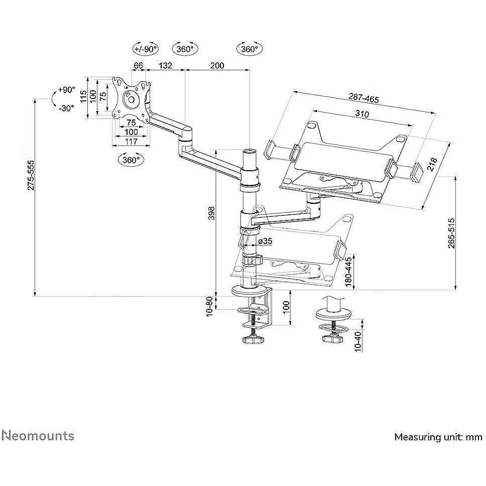 Description - NEOMOUNTS LAPTOP + SCREEN DESK MOUNT (CLAMP+GROMMET)