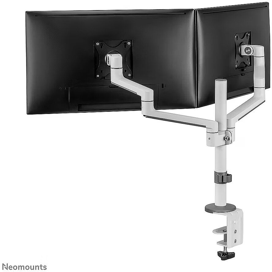 Description - NEOMOUNTS SCREEN DESK MOUNT FOR TWO MONITORS, WHITE (CLAMP+GROMMET)