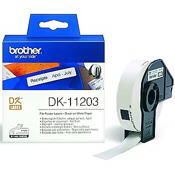 LongDesc - The Brother DK-11203 is part of the consumables and accessories range, suitable for the P-Touch labelling machines, producing file folder labels.DK Die Cut Labels – Convenient, pre-cut labels in shapes/sizes that are commonly used in mailing and administrative applications.The DK-11203 is for creating file folder labels measuring 17mm x 87mm with 300 labels per roll, suitable for Brother P-Touch labelling machines.