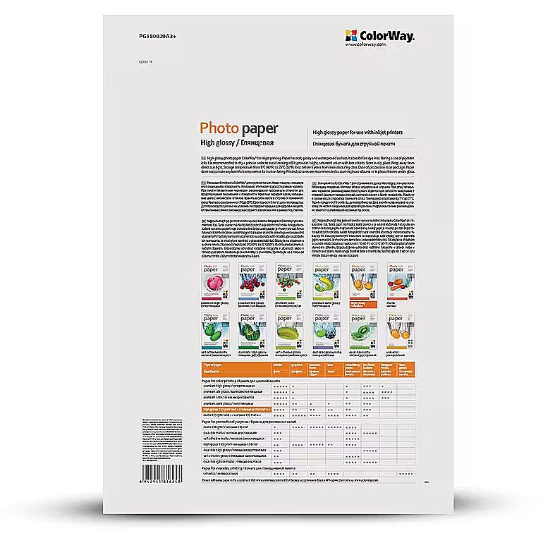 Name - ColorWay Photo Paper, 20 sheets | 180 g/m² | A3+ | High Glossy