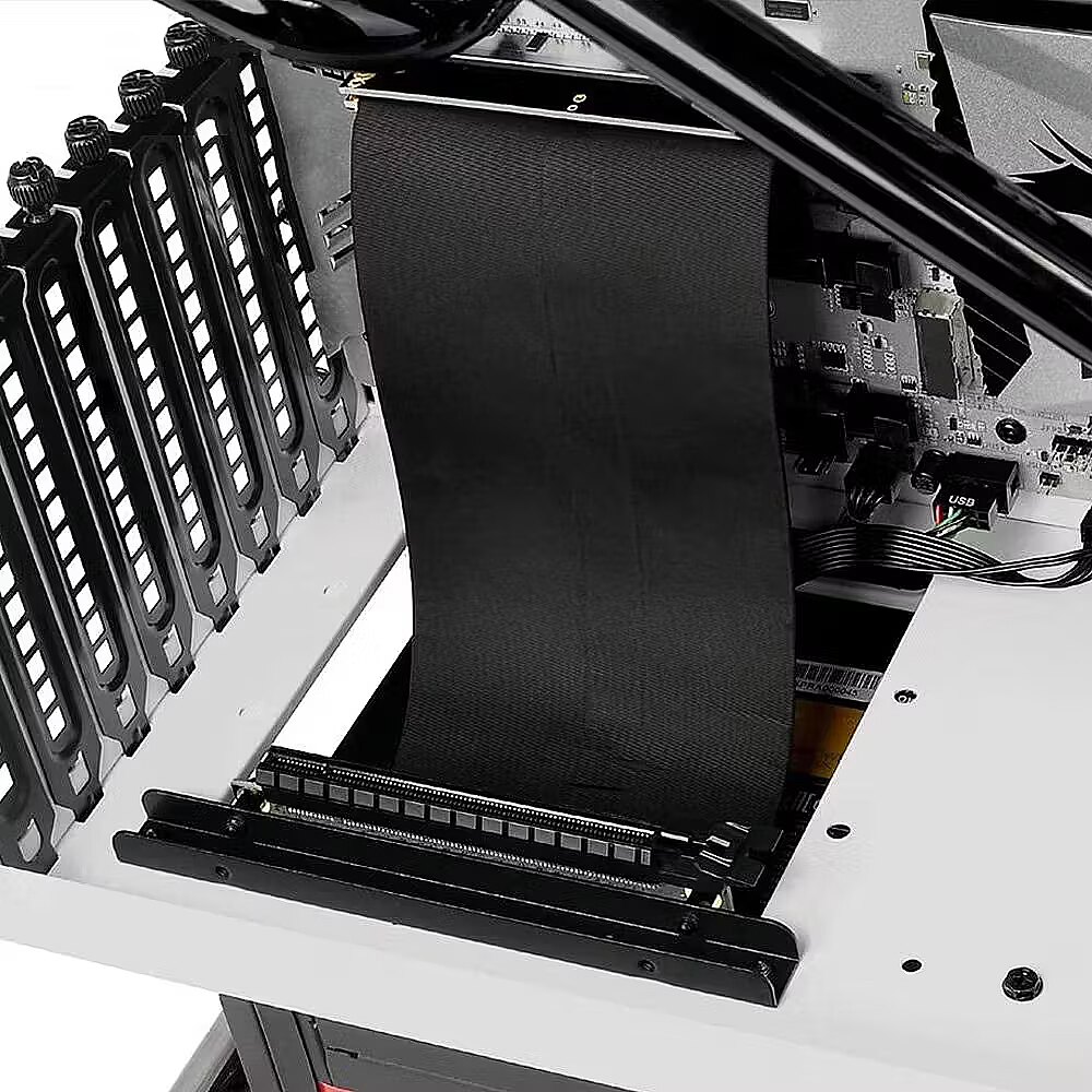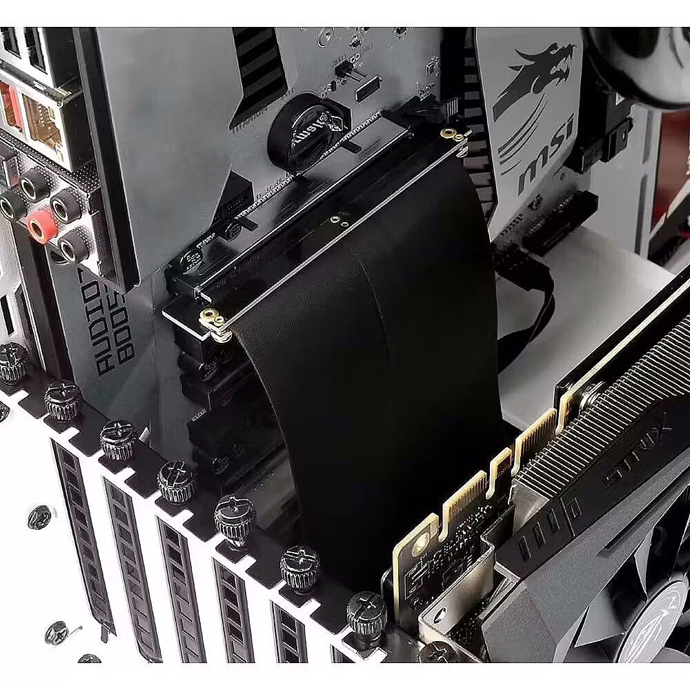 description_lv - Kabelis vertikālai GPU uzstādīšanai.Ar 100 mm garumu un 90º PCIe savienotāju šis kabelis ļauj viegli uzstādīt grafisko karti vertikālā pozīcijā, nodrošinot stabilu savienojumu. PCIe 3.0 x16 Izturīga konstrukcija ar 90º savienotāju Aizsardzība pret elektromagnētiskiem traucējumiem un 30AWG vara vadi 100 mm garums universālai uzstādīšanai Tehniskā specifikācija: Izmēri: 136 × 140 mm Svars: 130 g Materiāli: PPS, niķelis, zelts Kabeļa garums: 100 mm PCIe versija: 3.0 Savienotāji: PCI-E x16 Vīrietis uz PCI-E x16 90° Sieviete