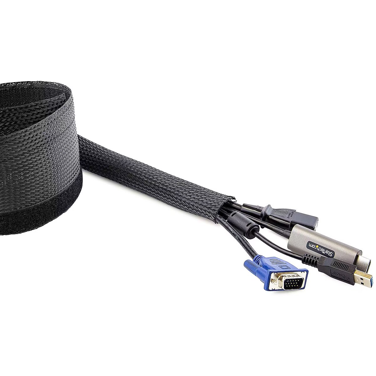 Title - StarTech.com 10ft (3m) Cable Management Sleeve, Trimmable Heavy Duty Cable Wrap, 1.2" (3cm) Dia. Polyester Mesh Computer Cable Manager/Protector/Concealer, Black Cord Organizer/Hider