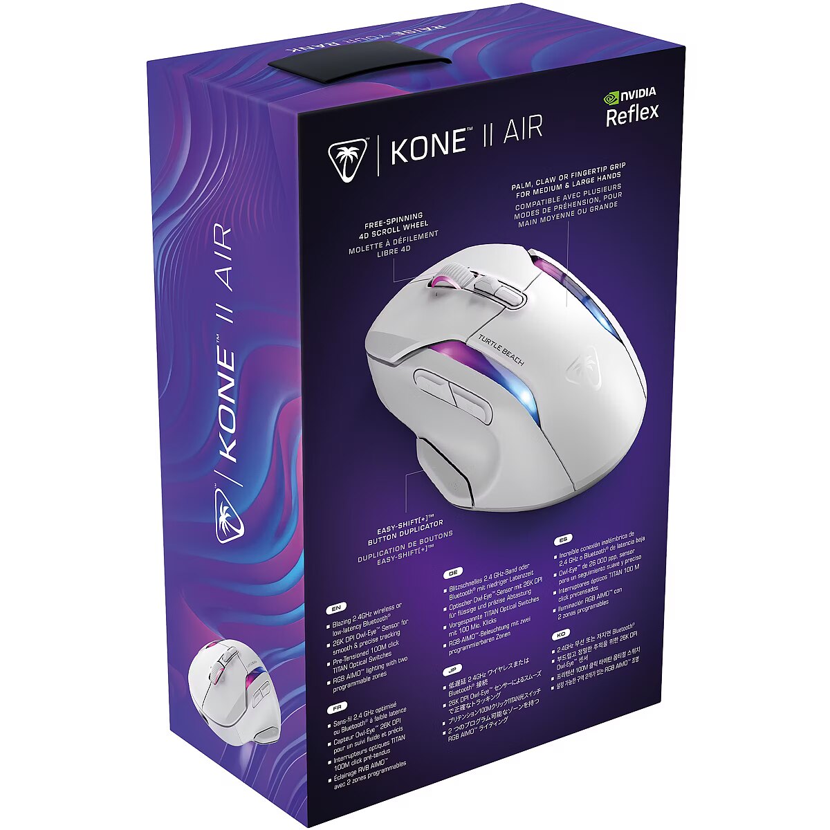 ShortSummaryDescription - Turtle Beach Kone II Air Arctic White – Wireless Ergonomic RGB Gaming Mouse, 350-Hr Battery, 26K DPI Optical Sensor, 100M Click Optical Switches, 21 Customizable Inputs, 4D Free-Spin Scroll Wheel, Right-hand, Optical, RF Wireless + Bluetooth, 26000 DPI, White
