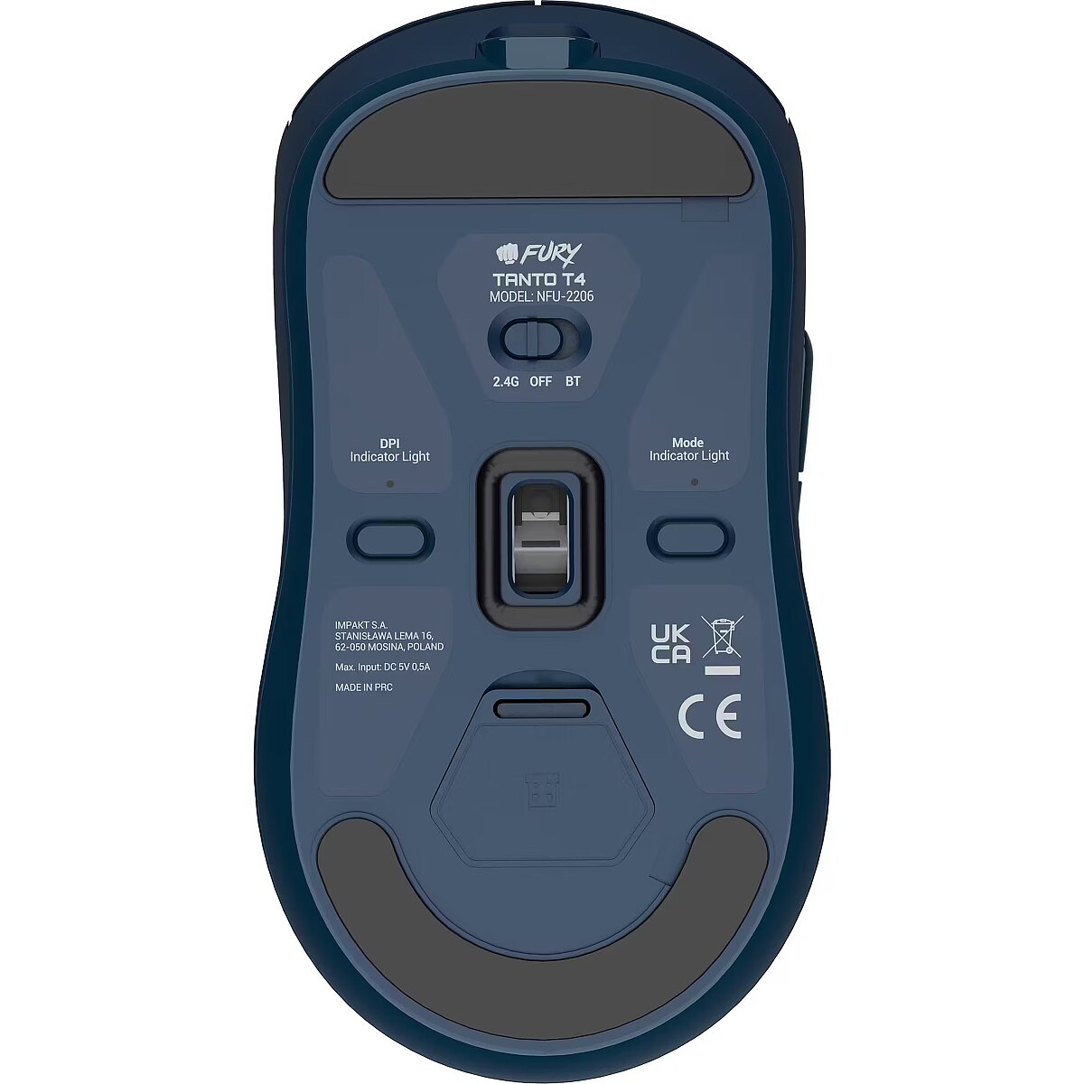 description_lv - Fury Tanto T4 Wireless ir augstas veiktspējas spēļu pele, kas paredzēta spēlētājiem, kuriem nepieciešams ātrums un precizitāte. Tā ir aprīkota ar uzlabotu sensoru un nodrošina ērtu lietošanu gan spēlēs, gan ikdienā. Tehniskā specifikācija: Savienojums: Bezvadu (2,4 GHz un Bluetooth 5.0), arī vadu, izmantojot USB Sensors: Pixart PAW3311 ar DPI diapazonu no 200 līdz 12 000. Izsekošanas ātrums: līdz 300 IPS Paātrinājums: līdz 35 G Aptaujas ātrums: 1000 Hz Pogu skaits: Svars: 53 g Izmēri: 118 × 62 × 40 mm Akumulators: 300 mAh iekšējais akumulators, līdz 80 stundām lietošanas ar vienu uzlādi Funkcijas: PTFE kājas, elastīgs Paracord kabelis uzlādei, papildu rokturi labākai lietošanai