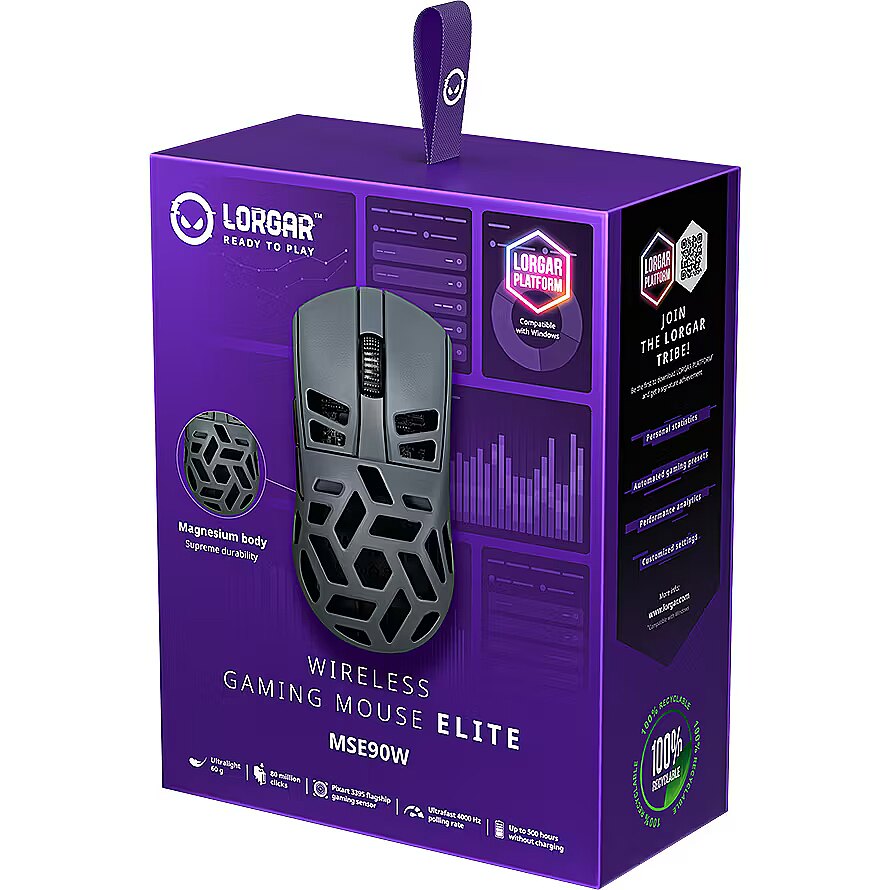 ProductDescription - LORGAR MSE90W, Magnesium Alloy Wireless Gaming Mouse Elite, Dark Grey