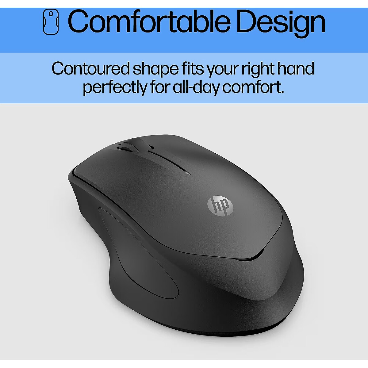 ShortSummaryDescription - HP 280 klusā bezvadu pele, labās puses, optiskā, RF bezvadu, melna