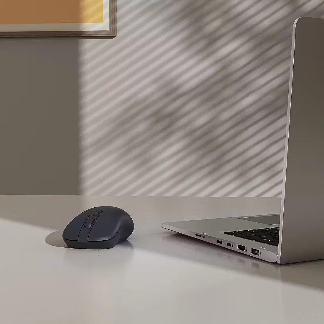 LongDesc - Precise, quiet and no cables: the optical 4-button mouse with scroll wheel allows the wireless control of a PC and laptopFor right and left-handed peopleFits in either hand: the precise, symmetrical shape of the optical mouse is ideal for both right and left-handed peopleWhisper-quiet buttonsQuiet mouse, no clicking noises: whisper-quiet buttons ensure undisturbed and relaxed working with the wireless mouseUSB receiver can be stowedA place of its own: the stowable USB receiver can be transported in a space-saving manner inside the mouse housing> 20% from demonstrably recycled sourcesAnd so the circle closes: this product is made up of at least 20% recycled materials, enabling us to take part in an eco-friendly cyclePlastic-freePackaging with a clear conscience: our packaging is 100% plastic-free, enabling us to reduce plastic waste and increase its recyclability
