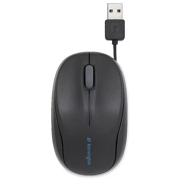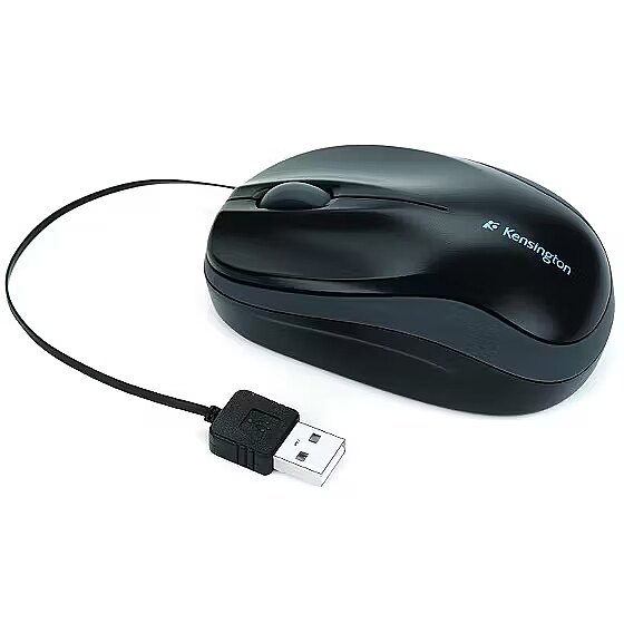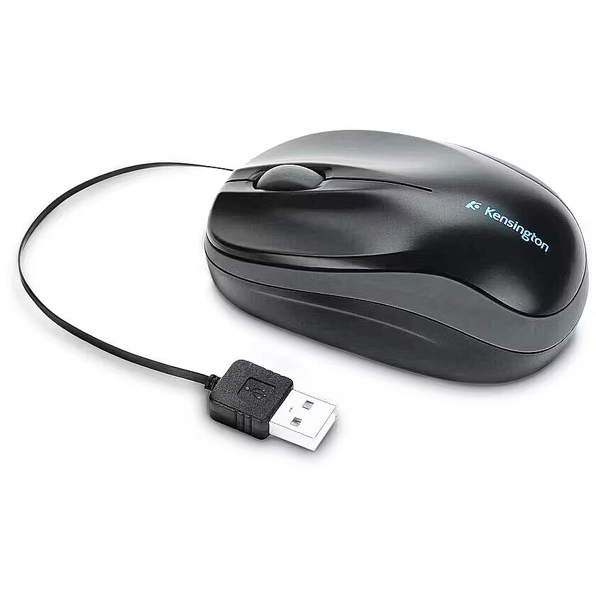 LongSummaryDescription - Kensington Pro Fit® Retractable Mobile Mouse. Form factor: Ambidextrous. Movement detection technology: Optical, Device interface: USB Type-A, Movement resolution: 1000 DPI, Buttons type: Pressed buttons, Buttons quantity: 3, Scroll type: Wheel. Power source: Cable. Product colour: Black