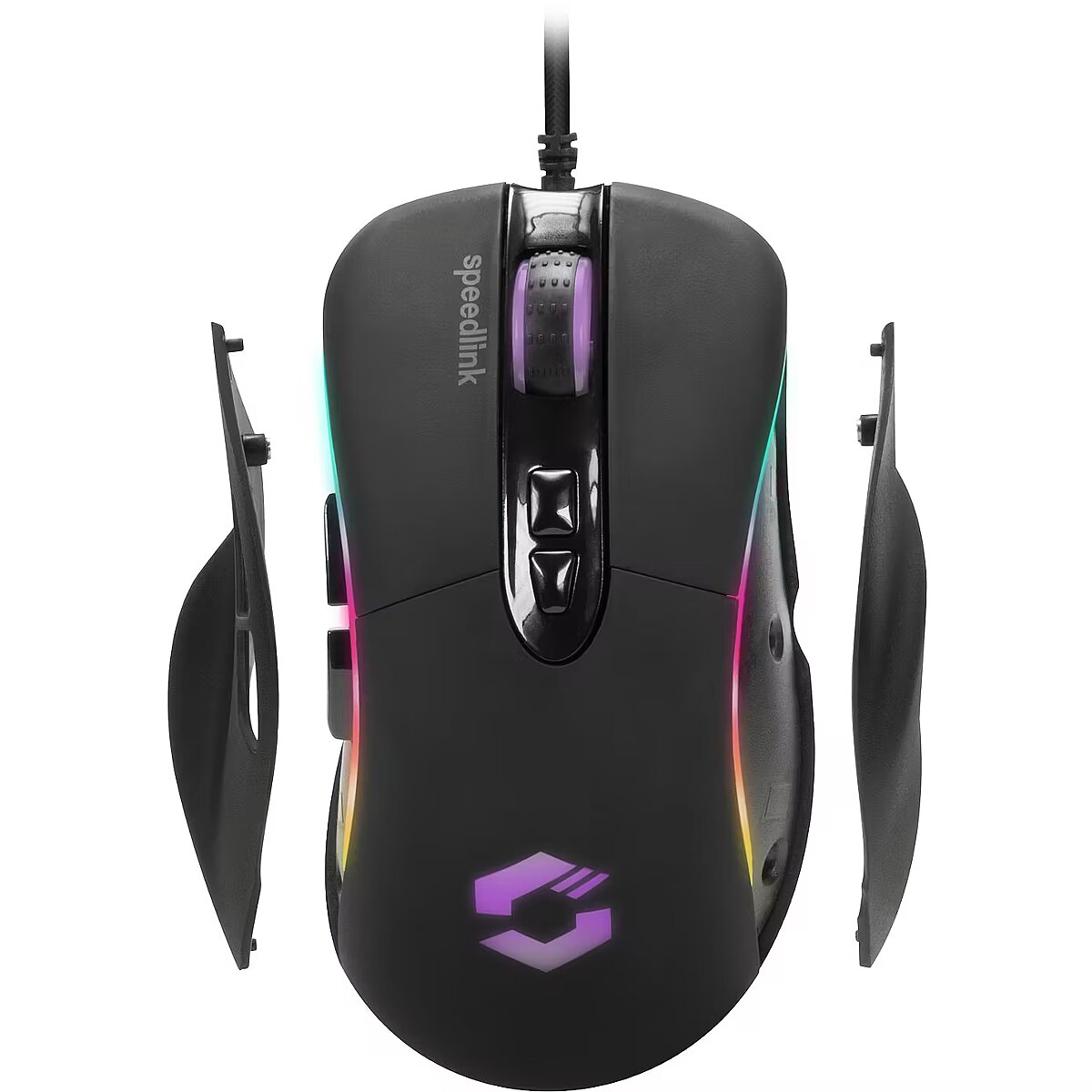 description_et - Sicanos RGB spēļu pele ir aprīkota ar četriem maināmiem sānu paneļiem, kas ļauj pielāgot peles platumu, lai tā atbilstu jūsu rokai. Vai vēlaties, kur atpūtināt pirkstus, vai dodat priekšroku racionālam dizainam? Vai jūs satverat peli ar visu galvu vai tikai ar pirkstu galiem? Sicanos ir piemērota jebkuram spēļu stilam. Pateicoties septiņām programmējamām pogām, jums būs tūlītēja piekļuve funkcijām, kas ir rokas stiepiena attālumā, lai nodrošinātu uzvaru virtuālajās spēlēs. Pateicoties Speedlink programmatūrai, varat arī izveidot makroefektus un pielāgot peles apgaismojuma efektus, izvēloties no 16,7 miljoniem krāsu. RGB izgaismota spēļu pele 7 ergonomiski izvietotas programmējamas pogas, tostarp DPI pārslēdzējs Noņemami sānu paneļi maksimālam komfortam Apgaismojuma efekti ar 16,7 miljoniem krāsu Programmatūra krāsu un makru iestatīšanai Augstas kvalitātes 5000 dpi (līdz 10 000 dpi interpolēti) Pixart 3325 spēļu sensors 1000 Hz pulsēšana Gumijota virsma labākai satveršanai Gluda pamatne Pīts kabelis.