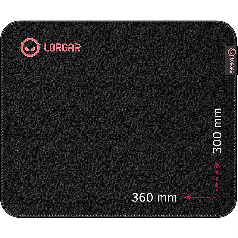 ProductDescription - Lorgar Main 323, Gaming mouse pad, Precise control surface, Red anti-slip rubber base, size: 360mm x 300mm x 3mm, weight 0.21kg