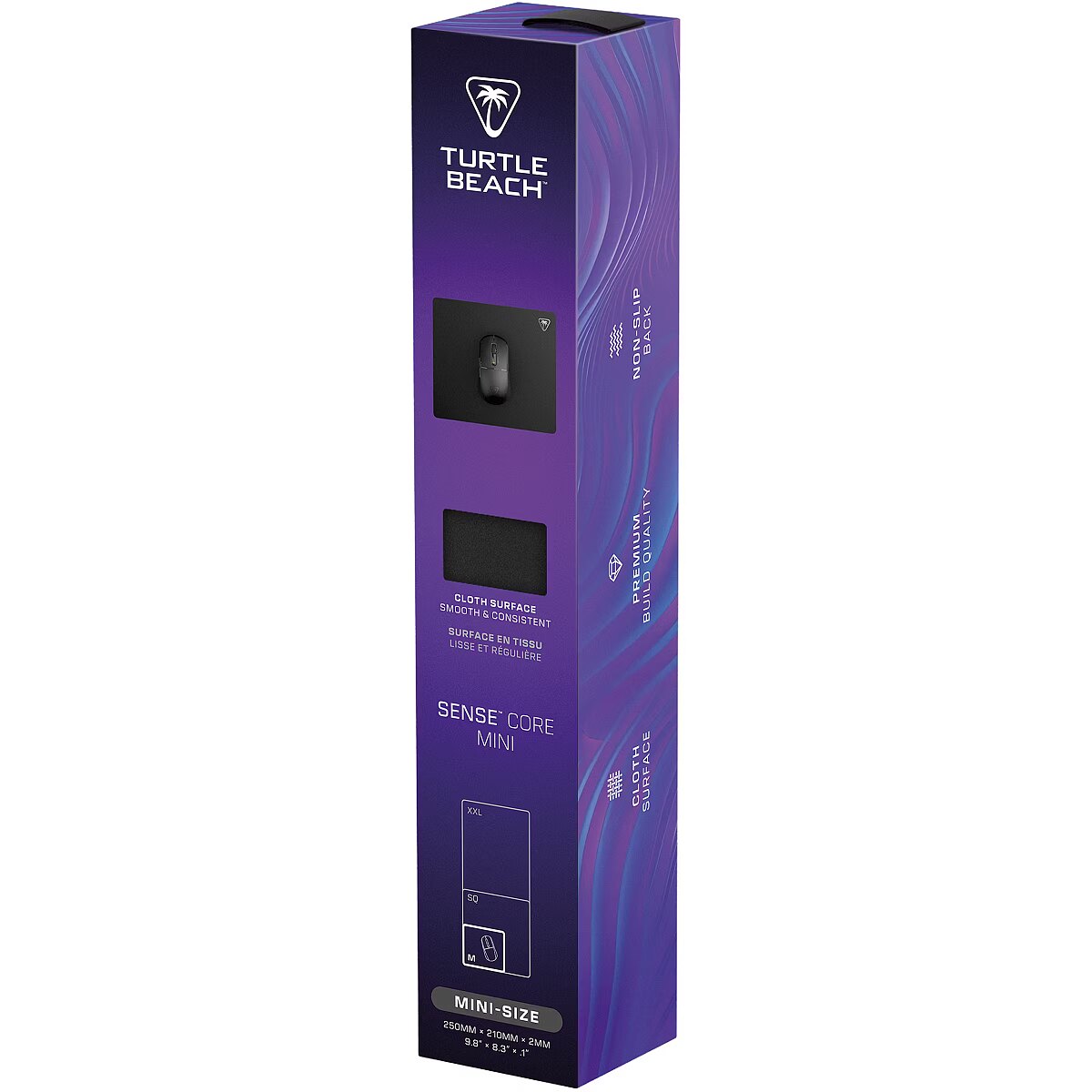 LongSummaryDescription - Turtle Beach Sense Core Mini. Width: 250 mm, Depth: 210 mm. Product colour: Black, Surface coloration: Monochromatic, Material: Polyester, Rubber, Non-slip base, Gaming mouse pad