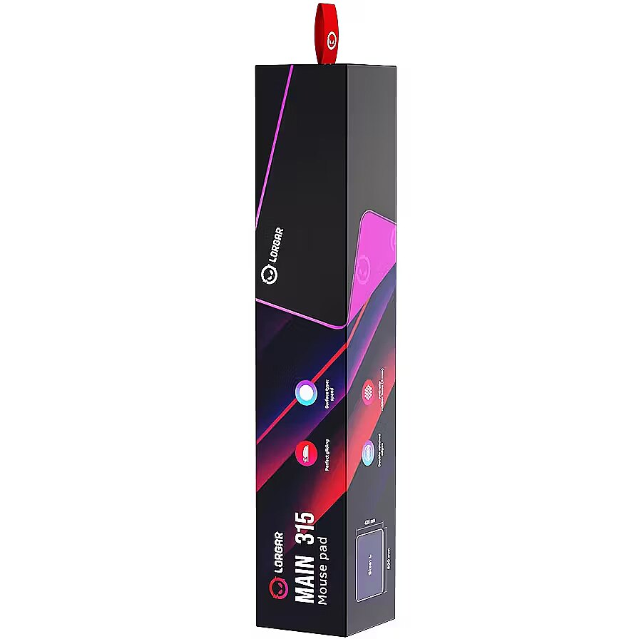 ProductDescription - Lorgar Main 315, Gaming mouse pad, High-speed surface, Purple anti-slip rubber base, size: 500mm x 420mm x 3mm, weight 0.39kg