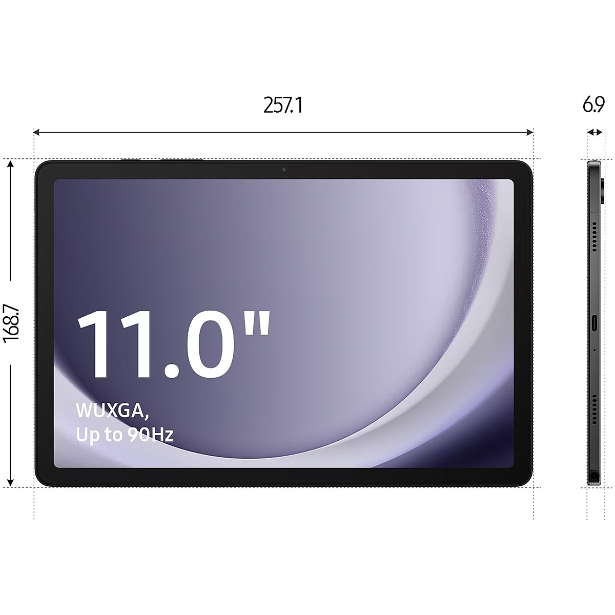 LongDesc - Classic and contemporaryStylish with a touch of cool, the Galaxy Tab A9 and Tab A9+ features a sleek design and a smooth metal body. Enjoy Samsungs signature tablet design in Graphite, Silver and Navy with each hue highlighting effortless charm.Expansive, bright visuals with smooth motionExperience the joy of entertainment on the large, bright display. Galaxy Tab A9+'s high screen refresh rate lets you immerse in the visuals with smooth and fluid motion. Even when you are out in the sun, step into the captivating world of your favorite content.Store more of what you loveGalaxy Tab A9 and Tab A9+ come with up to 8GB of memory, ensuring less lag while you multi-task. Plus, the built-in 128GB storage saves all your hi-res videos, photos and files. You can expand the storage with a microSD card — up to 1TB. Store more of what you love and delete less.Split the screen into three. Multiply your productivityConquer multiple tasks at once. With Galaxy Tab A9+, you can sketch out architectural plans and choose captivating visuals and video chat — up to three apps all on one screen without ever closing a window.Surround yourself with rich audioTake a deep dive into a rich soundscape with speakers that provide an enveloping audio experience. Whether you're enjoying a movie or music, Galaxy Tab A9+ lets you fully engage in 3D sound with stunning clarity and depth.Secure your peace of mindKeep your information safe and sound. Store important data in the Secure Folder and monitor the overall security status of your device on the Privacy Dashboard. Make the most of your Samsung Galaxy experience, worry-free of security issues.