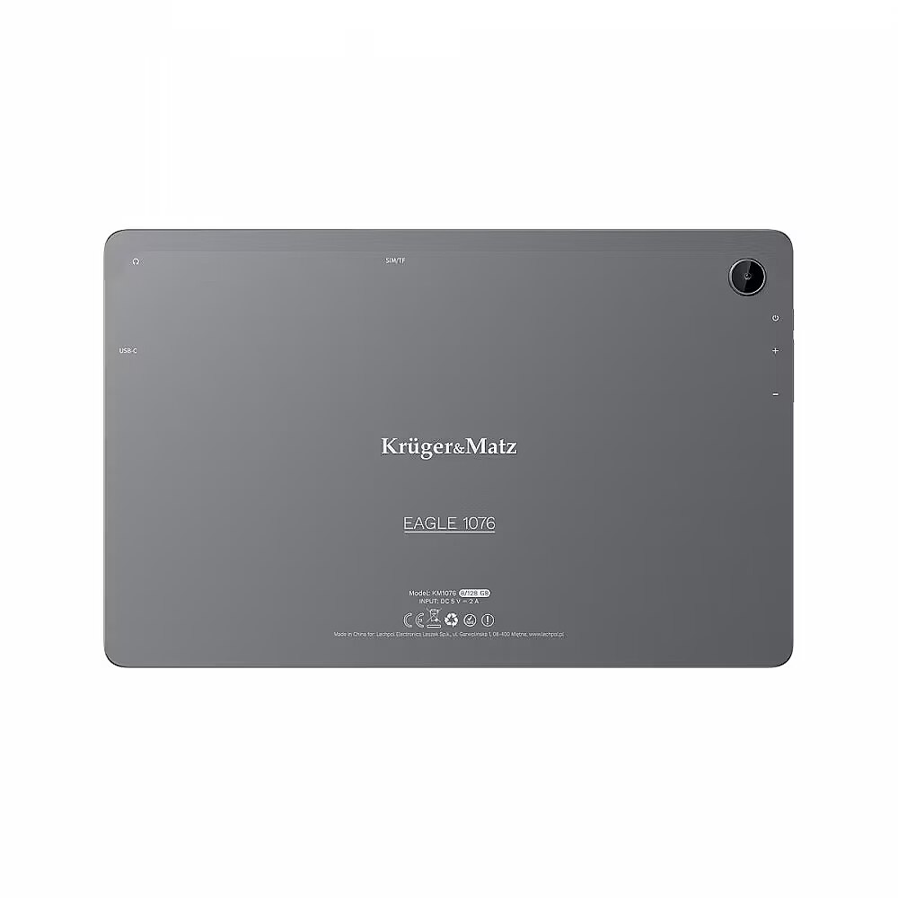 Description - Kruger&Matz EAGLE 1076 tablet You don't know which tablet to buy? Choose a combination of impressive functionality, stylish design and attractive price. Kruger&Matz EAGLE 1076 offers you all this and more. Let yourself be surprised by the possibilities this tablet opens up to you! 10 inch screen Is tablet image quality important to you? EAGLE 1076 is equipped with a screen with a diagonal of 10.4 mm and a resolution of 1200 x 2000 px. Comfortable use of the device even in the brightest sunlight is additionally guaranteed by the IPS matrix. Performance on par The eight-core MT6789 processor clocked at 2 GHz used in the EAGLE 1076, combined with 8 GB of RAM, create a harmonious and efficient whole. Thanks to this, your tablet can easily handle several applications at the same time or play movies and games in high resolution. Keep this in mind The Kruger&Matz EAGLE 1076 tablet will allow you to store a really large amount of files, music and applications. The device is equipped with 128 GB of internal memory, which can be increased up to 2 TB using a memory card. Android 13 Check the optimized operation of the Android 13 system. The use of the latest version of the system in the EAGLE 1076 tablet focuses on improving efficiency, privacy and comfort of use, providing you with modern and advanced solutions. In virtual contact Do you need a tablet for remote learning for your child? Or maybe you're going to have a video conference with your colleagues? Thanks to the 5 Mpix front camera, EAGLE 1076 is perfect for online communication. The perfect companion The EAGLE 1076 tablet will also be a good companion during relaxation. The device is equipped with two speakers that will provide you with very good sound of songs from your private playlist. Stereo speakers make EAGLE 1076 also perfect as a tablet for watching movies. Freedom of communication A tablet with an LTE modem is an ideal solution for anyone who does not want to make contact with the virtual world dependent on tethering and publicly available Wi-Fi networks. Use the SIM card slot and LTE modem that EAGLE 1076 is equipped with and enjoy constant access to the Internet. Always with you Take your tablet with you everywhere and don't worry about the battery running out! This, used in the EAGLE 1076 model, will provide you with many hours of comfortable use of the device, without the need to connect it to the power supply.