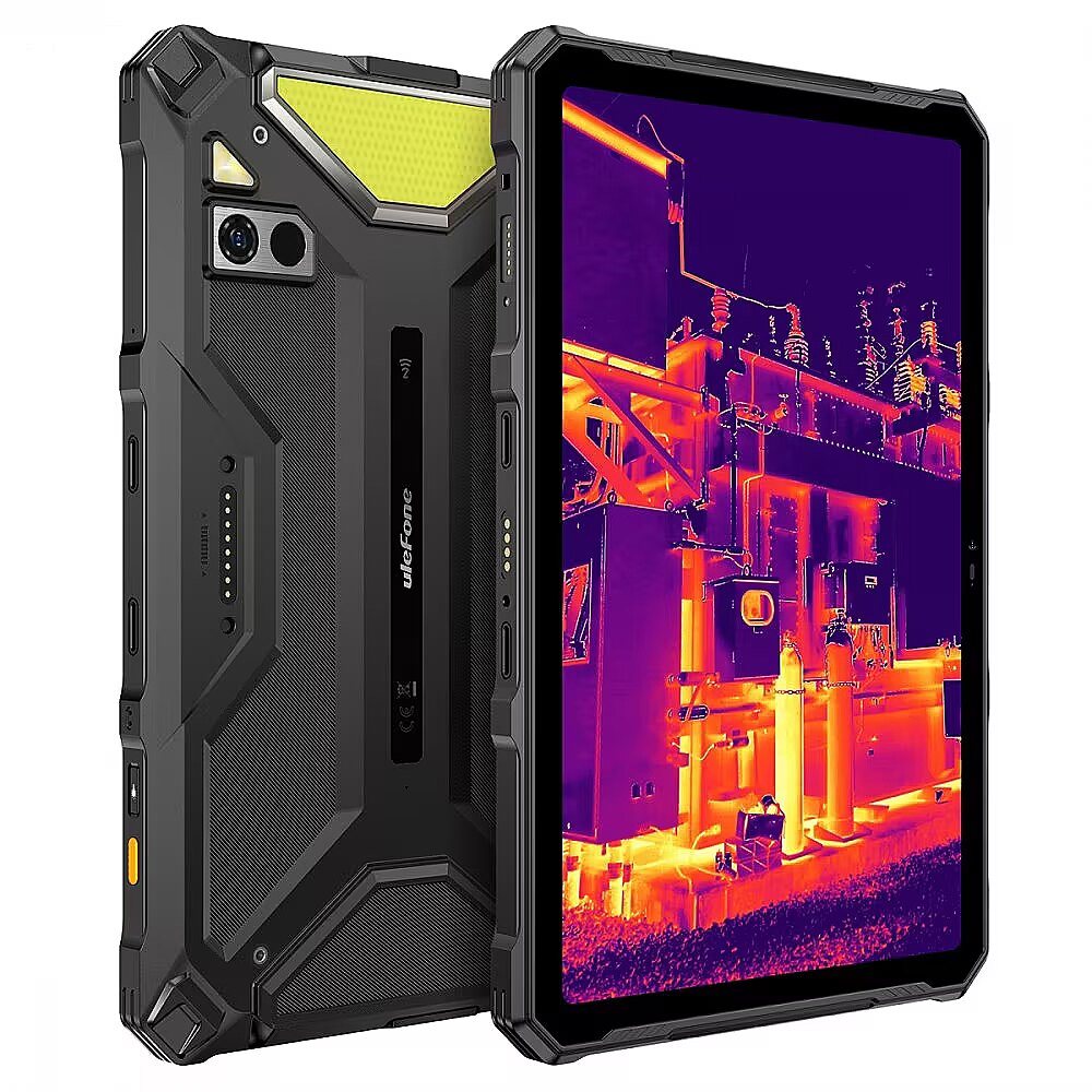 Apraksts - Armor Pad 4 Ultra Thermal Sertificēts atbilstoši IP68, IP69K un MIL-STD-810H standartiem Armor Pad 4 Ultra ir bruņots planšetdators, kas paredzēts lietošanai ekstremālos apstākļos. Ar militārās klases izturīgumu un pastiprinātu korpusu tas nodrošina nepārspējamu aizsardzību pret bojājumiem. Ulefone Defender dizains Īpaši izturīga konstrukcija, kas izgatavota no augstas kvalitātes plastmasas un nodrošina augstu izturību pret kritieniem un spēcīgiem triecieniem. Paaugstinātas malas ap kamerām un LED lukturiem un īpaši pastiprināti stūri vēl vairāk uzlabo planšetdatora izturību. Nozarē vadošā termālās attēlveidošanas tehnoloģija 3x veiktspēja Armor Pad 4 Ultra ir aprīkots ar ThermoVue modernāko termālās attēlveidošanas sensoru. Uzlabotie algoritmi ļauj viegli noteikt siltuma avotus un temperatūras atšķirības, turklāt attēls ir augstas kvalitātes. ThermoVue lietotne ThermoVue lietotne ļauj uzņemt termālos attēlus un videoklipus. Turklāt tai ir laika intervāla režīms, lai sekotu objekta temperatūras izmaiņām laika gaitā. Katrs režīms ir optimizēts Armor Pad 4 Ultra lielajam ekrānam, nodrošinot izcilu skaidrību un ļaujot viegli analizēt termālos datus. Īpašais uSmart ports Unikālais īpašais uSmart ports ļauj izmantot tādus piederumus kā endoskopijas kameras vai mikroskopu uSmart C01. Tā uzticamais savienojums atvieglo darbu transportlīdzekļu tehniskās apkopes, cauruļu pārbaudes un līdzīgu darbību laikā. *Minētie uSmart piederumi tiek pārdoti atsevišķi. Rokas siksna Armor Pad 4 Ultra aizmugurē var piestiprināt rokas siksnu. Tā ļauj izvietot roku caur to, lai nodrošinātu stabilu un ērtu satvērienu. Tā palīdz novērst nejaušu kritienu, strādājot sarežģītos apstākļos vai pārvietojoties, atstājot otru roku brīvu, lai tajā pašā laikā veiktu uzdevumus *Ietverta rokas siksna. Roktura rokturis ar atbalstu 360° roktura rokturis ar atbalstu nodrošina ērtāku un efektīvāku darbu sarežģītos apstākļos *Ruktura rokturis ar atbalstu tiek pārdots atsevišķi. Armor Holster Pro Paredzēts darbam kustībā Armor Holster Pro ar futrāli un plecu siksnu ir paredzēts darbam kustībā. Tas ļauj strādāt efektīvi un ievērojami uzlabo planšetdatora mobilitāti *Armor Holster Pro tiek pārdots atsevišķi. Ekskluzīvs Sound Kit skaļrunis Sound Kit skaļrunis ir viegli savienojams ar planšetdatoru, izmantojot 8 kontakta savienotāju. Papildus lieliskajai skaņas kvalitātei SoundKit piedāvā arī LED apgaismojumu, kas sinhronizēts ar mūziku. Armor Mount Max Automobiļa planšetdatora turētāju Armor Mount Max var viegli piestiprināt pie automašīnas vai kravas automašīnas vējstikla, nodrošinot stabilu pamatu planšetdatoram, kad pārvietojaties vai izklaidējaties ceļā. Četri vibrāciju absorbējoši moduļi, kā arī bufera spilvens, pretvibrācijas piesūceknis un vibrāciju absorbētājs nodrošina drošu stiprinājumu un nekādu vibrāciju pat uz sliktākajiem ceļiem *Armor Mount Max tiek pārdots atsevišķi. 5G tīkls Modernākā 5G tehnoloģija nodrošina zibensātru lejupielādes un augšupielādes ātrumu, īpaši zemu latentumu un lielāku tīkla jaudu. MediaTek Dimensity 6300 5G MediaTek Dimensity 6300 ar 8 kodoliem un modernu Arm Mali-G57 MC2 grafikas mikroshēmu nodrošina izcilu veiktspēju un ātru un uzticamu 5G interneta savienojumu. Līdz 16 GB RAM + 256 GB ROM 8 GB RAM, ko iespējams paplašināt ar papildu 8 GB virtuālās atmiņas, nodrošina vienmērīgu daudzuzdevumu izpildi un lietojumprogrammu pārslēgšanu bez kavēšanās. Ar 256 GB iekšējās atmiņas un iespēju to paplašināt par papildu 2 TB, izmantojot microSD karti*, Armor Pad 4 Ultra piedāvā pietiekami daudz vietas fotogrāfijām, videoklipiem, failiem, spēlēm un citām lietām * Virtuālo RAM var aktivizēt iestatījumos atbilstoši vēlmēm. MikroSD karte nav iekļauta komplektācijā, un, ja nepieciešams, tā jāiegādājas atsevišķi. Milzīgs 11800 mAh akumulators Armor Pad 4 Ultra ir jaudīgs 11800 mAh akumulators, kas ļauj strādāt un baudīt izklaidi stundām ilgi bez biežas uzlādes. Turklāt tā akumulators var droši darboties pat -30 °C zemas temperatūras apstākļos! Uzlādes stacija Papildus 33 W ātrajai vadu uzlādei Armor Pad 4 Ultra piedāvā arī ērtu bezvadu uzlādi *Bezvadu uzlādes stacija ir jāiegādājas atsevišķi. Pārnēsājama powerbank 10 W uzlādes funkcija ļauj ātri uzlādēt dažādas ierīces, piemēram, austiņas ausīs, iPhone, planšetdatorus un viedpulksteņus. 2K 10,36" displejs Lielais 10,36" 2K displejs nodrošina elpu aizraujoši spilgtus un reālistiskus attēlus. Spilgtums 500 nits Maksimālais spilgtums 500 nits padara ekrānu viegli saskatāmu tiešā saules gaismā vai citās spilgti apgaismotās vietās. Corning Gorilla Glass Corning Gorilla Glass nodrošina augstu izturību pret kritieniem un triecieniem. Tas ievērojami samazina ekrāna plaisāšanas vai sadrupšanas iespējamību, tāpēc tas ir ideāli piemērots lietošanai skarbā vidē. 32 MP priekšējā kamera Armor Pad 4 Ultra 32 MP priekšējā kamera uztver vissīkākās detaļas un nodrošina augstas kvalitātes videozvanus. Profesionāla 50 MP galvenā kamera 50 MP galvenajai kamerai ir īpaši liels 1/1,31 collas sensors un f/1,95 diafragma, kas ļauj uztvert vairāk gaismas, lai iegūtu satriecoši spilgtas un skaidras fotogrāfijas. Profesionāls LED apgaismojums 1100 lūmeni Armor Pad 4 Ultra var izmantot kā lukturīti, galveno lukturi vai pārnēsājamu kempinga apgaismojumu, pateicoties neticami jaudīgajām LED diodēm. Vienkārši nospiediet gaismas pogu vai izmantojiet īpašo lietotni, lai piekļūtu jaudīgajam gaismas avotam. Daudzpusīga lietošana Pateicoties tās izturīgajai konstrukcijai, LED gaisma ir ideāli piemērota āra piedzīvojumiem, piemēram, kempingam, nakts zvejai, pārgājieniem vai velobraucieniem. Divi ster