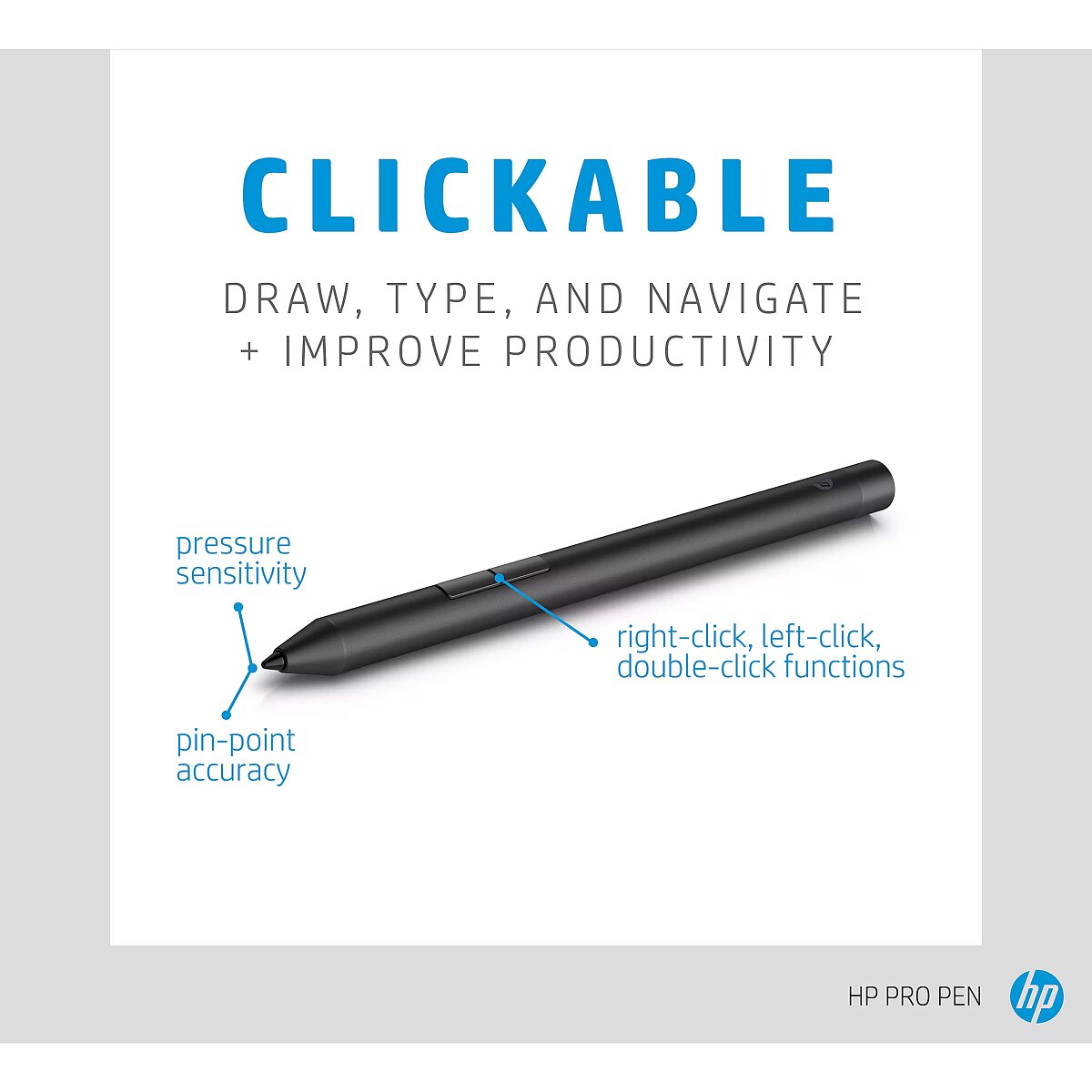 LongDesc - Izturīga digitālā pildspalva, kas darbojas arī kā peleVeiciet piezīmes, navigējiet, zīmējiet, zīmējiet, zīmējiet un rediģējiet uz ekrāna ar izturīgo, daudzfunkcionālo HP Pro Pen pildspalvu ar ilgu kalpošanas laiku.