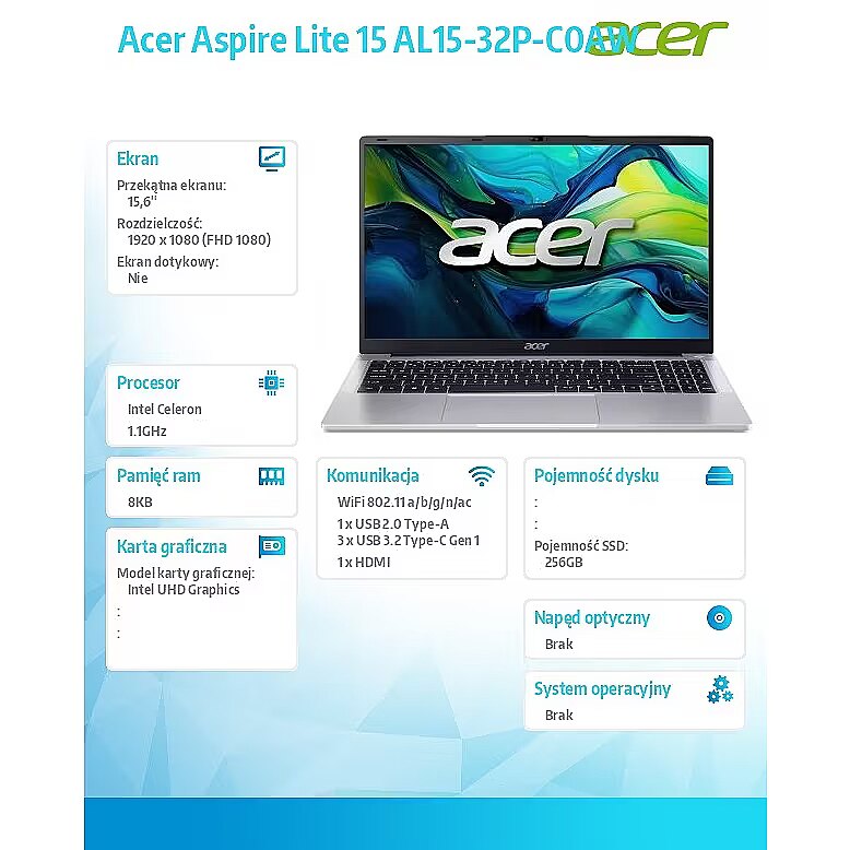 Description - Laptop Acer Aspire Lite 15 AL15-32P-C0AW Celeron N4500, 15.6 FHD