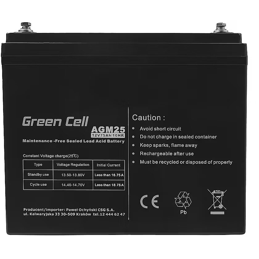 productName - Green Cell AGM25 UPS battery Sealed Lead Acid (VRLA) 12 V 75 Ah