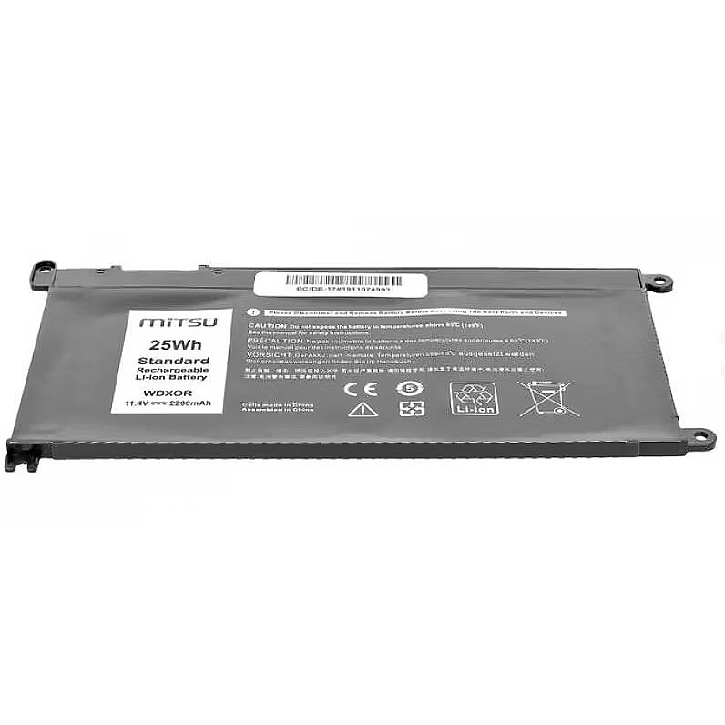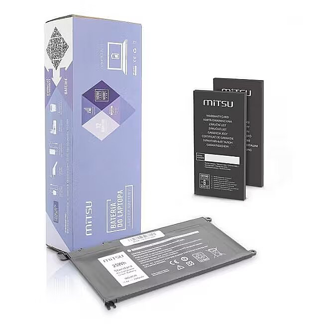 Description - Battery for Dell Vostro 14 (5468), Inspiron 15 (5568) High quality with a reasonable price, safety and ecology are the features of MITSU batteries, which have already been appreciated by thousands of Europeans, mainly in Poland, the Czech Republic and Slovakia. It is the result of combining the best components with attention to every stage of the production process, supported by constant quality control, as well as an emphasis on device safety. MITSU is: High class, proven, environmentally friendly class A lithium-ion cells, Actual declared capacity Much slower decrease in nominal capacity compared to other cheaper substitutes, Low susceptibility to spontaneous discharges, No memory effect Factory protection against overcharging and deep discharge, as well as against OVP overvoltage, OTP overheating, SCP short circuit and OCP overload, Reliable and long time between successive charging cycles, 6 levels of quality control. By buying this laptop battery you can also be sure that at the same time you care for the natural environment. The manufacturer closely cooperates with organizations dealing with broadly understood ecological education, supporting selective collection and maximum waste recovery. MITSU batteries are products with CE, ROHS and ISO9001 certificates.