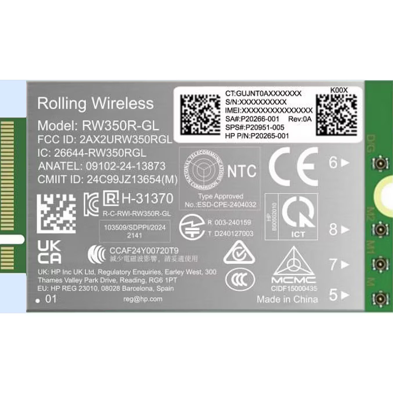 LongSummaryDescription - HP 4G LTE-Advanced Pro Cat19 WWAN. Country of origin: China. HP segment: Business. Windows operating systems supported: Windows 10, Windows 11. Width: 52 mm, Depth: 30 mm, Height: 2.3 mm. Package width: 232 mm, Package depth: 148 mm, Package height: 10 mm
