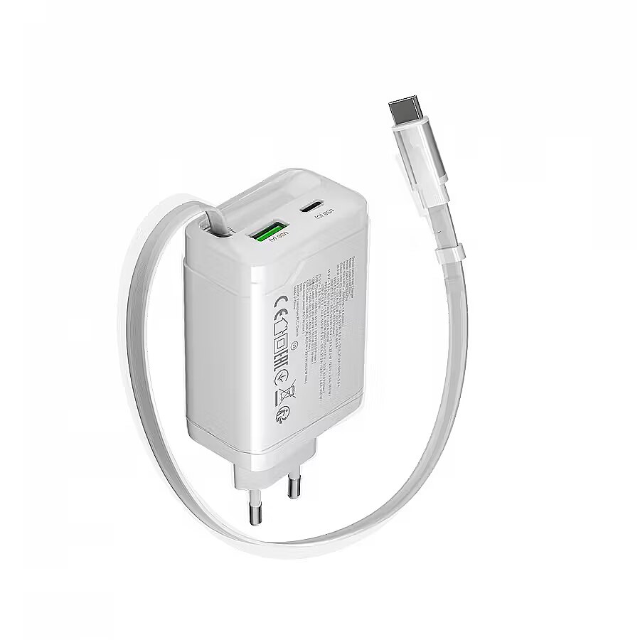 Barošanas adaptera un barošanas avota funkcijas - Power DeliveryGaN tehnoloģijaātra uzlādeizvelkams USB-C kabelis