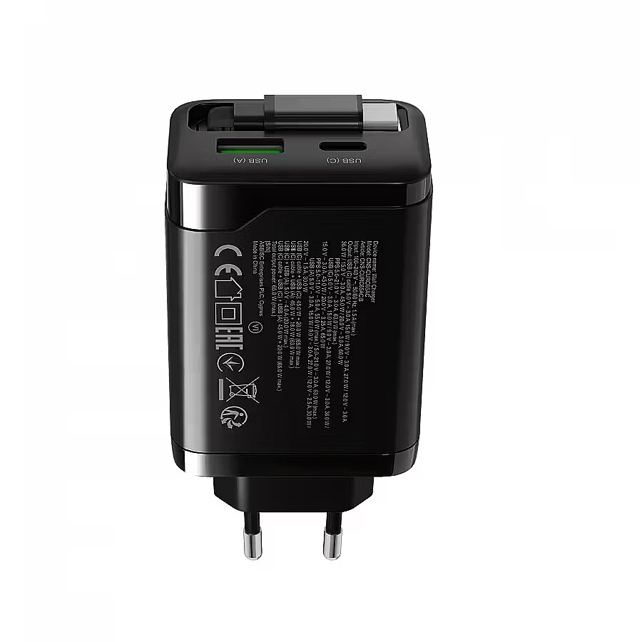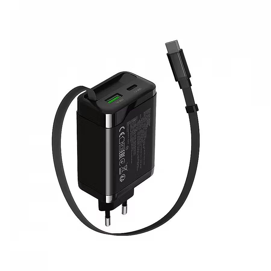 Barošanas adaptera un barošanas avota funkcijas - Power DeliveryGaN tehnoloģijaātra uzlādeizvelkams USB-C kabelis