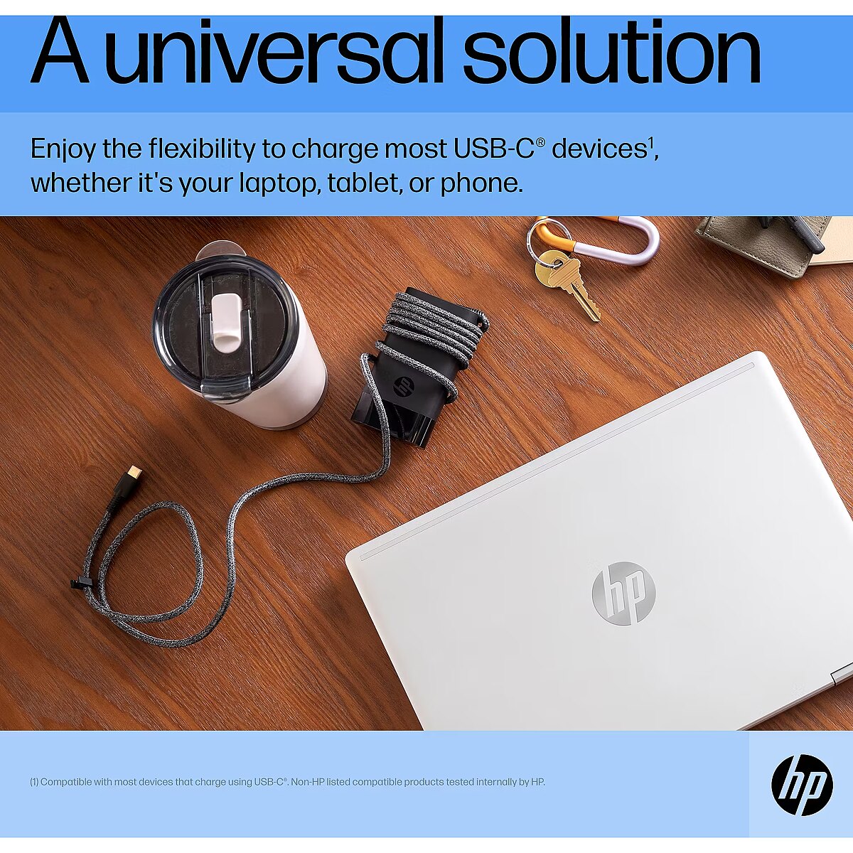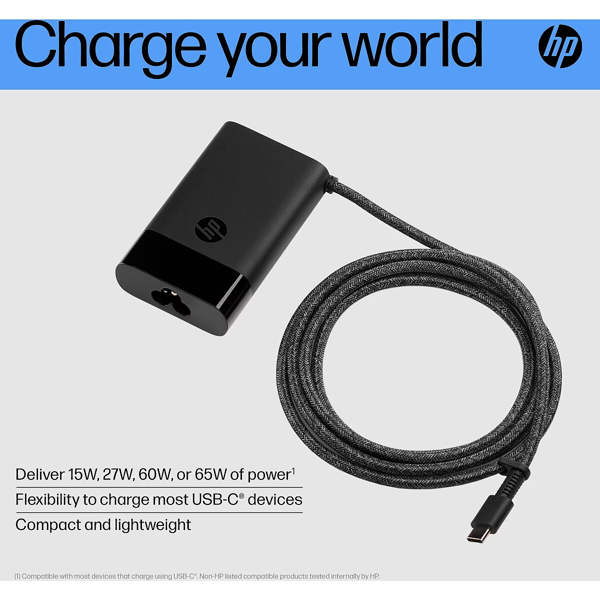 LongDesc - Charge your WorldCharge most USB-C® devices with just one compact charger. The HP 65W USB-C Laptop Charger provides up to 65W of power, enough for almost any USB-C® device.