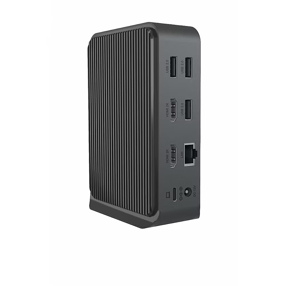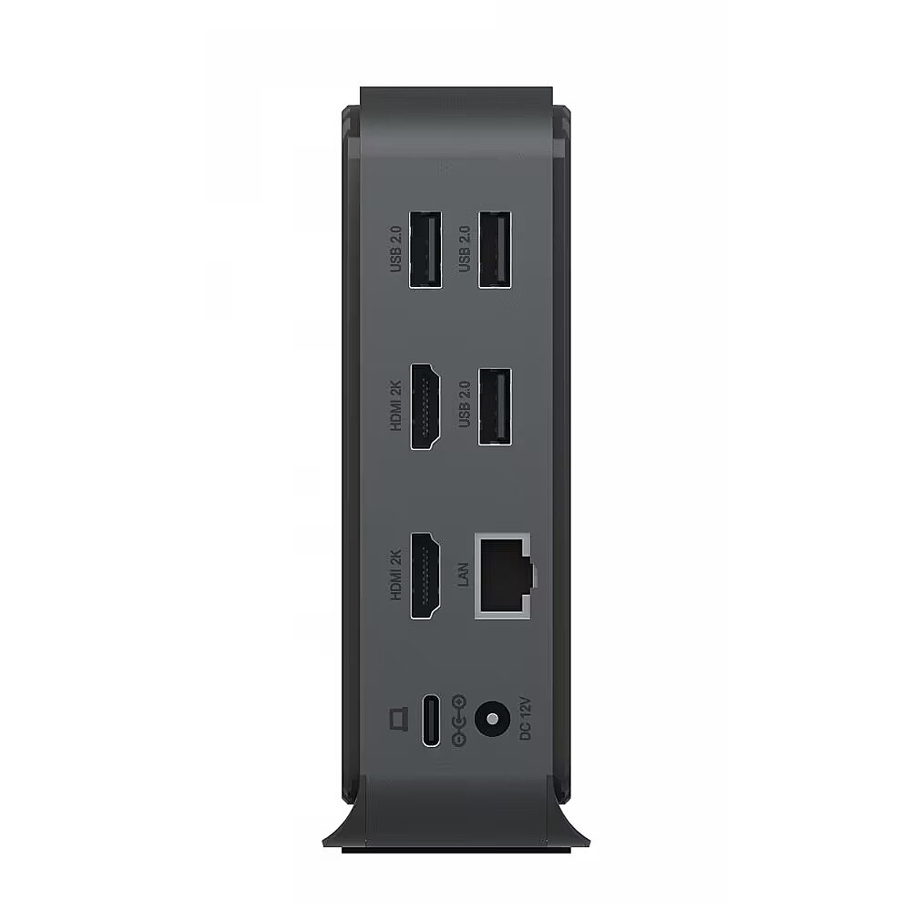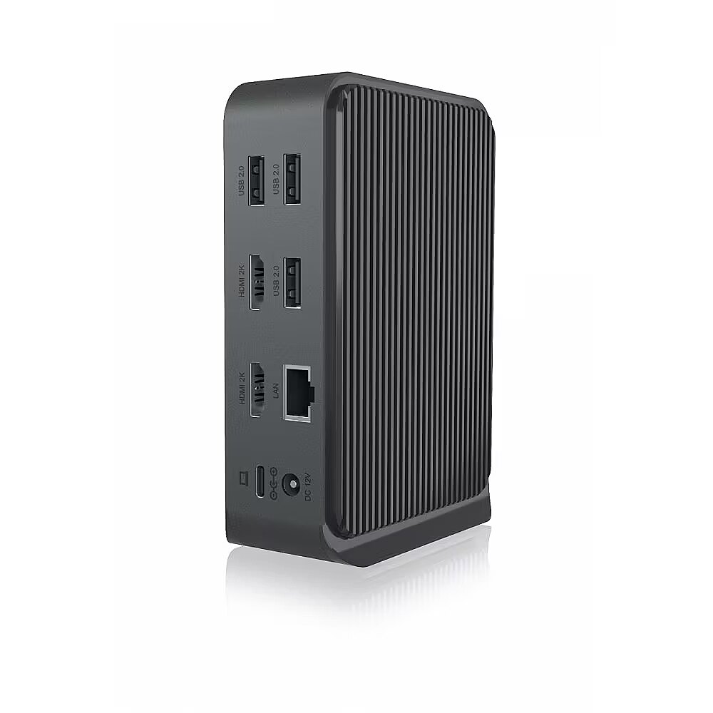LongDesc - Design pleases the eyeFed up with the uniformity of DockingStations that always look the same? Then take a look at the newly developed dock from ICY BOX. A fine material mix of high-quality plastic and aluminium, discreet anthracite, standing and space-saving, it blends into almost any workplace environmentwithout being obtrusive: a real eye-catcher.DisplayLink® solutionThis DockingStation uses only DisplayLink® technology to transfer data and video signals and connects via a USB 3.2 Gen 1 Type-C® or Type-A port on the computer. Compatible operating systems are macOS®, Windows®, Chrome OS™ or Ubuntu® (Linux), provided the latest DisplayLink® software is installed.Productive with two 2K monitorsThe DockingStation allows the connection of two additional and independent Full-HD monitors. Thiscreates more overview and comfort when working. The many connection options at your workplace support the use of practical and helpful peripherals for more productivity.