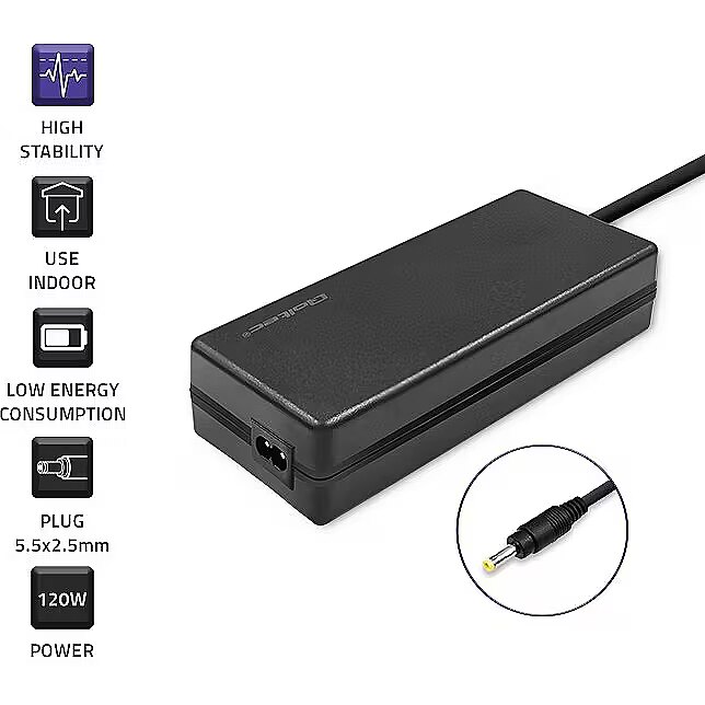 Apraksts - Risinājums, kas veltīts tieši jums Uzticamība jums ir būtiska? Izvēlieties Qoltec 120 W maiņstrāvas adapteri, kas paredzēts Asus klēpjdatoriem. Tas būs ideāli piemērots lietošanai mājās vai birojā. Tas ir izgatavots no augstākās kvalitātes materiāliem, un tajā izmantotās tehnoloģijas nodrošinās zemu enerģijas patēriņu un augstu efektivitāti. Turklāt tam ir raksturīga augsta stabilitāte. Komplektā atradīsiet Asus 120 W strāvas adapteri ar 5,5*2,5 kontaktdakšu un velcro kabeļa organizēšanai, lai jūs varētu pielāgot kabeļa garumu savām vajadzībām. Drošs barošanas avots universālā versijā Mūsu barošanas adapteris ir aprīkots ar aizsargierīcēm: pārsprieguma aizsardzība tā aizsargā pret pārāk zemu vai pārāk augstu ieejas spriegumu, pārslodzes aizsardzība tā aizsargā pret katras barošanas līnijas pārslodzi, īssavienojuma aizsardzība tā aizsargā pret īssavienojumu barošanas ķēdē, pārkaršanas aizsardzība tā aizsargā pret pārslodzi vai sliktu gaisa cirkulāciju. Spēlētājiem Spēlētājiem paredzētie klēpjdatori ir aprīkoti ar modernām tehnoloģijām. Spēcīgam procesoram un jaudīgai grafiskajai kartei ir nepieciešama liela jauda, lai nodrošinātu stabilu darbību. To garantē atbilstošs barošanas avots, kas nodrošina visu komponentu pareizu darbību. Tāpēc ir tik svarīgi izvēlēties labāko barošanas adapteri, kas ļaus jums izbaudīt neaizmirstamu spēļu pieredzi.