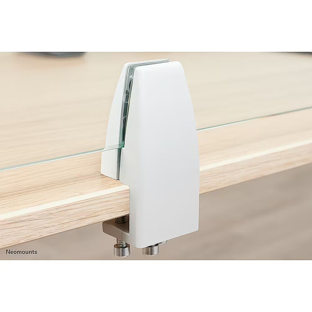 LongDesc - The Neomounts NS-CLMP40WHITE is suitable for desks with a thickness of 8-25 mm. The clamps guarantee a solid and secure installation of i.a the NS-GLSPROTECT safety screens or any other suitable screen you want to attach onto the desk. The clamps are secured directly onto the desk and therefore move smoothly with the height adjustable desk. Also available: For desks with a table top thinner than 25 mm, the NS-CLMP25 clamps - in black and white - are available. With these clamps, the screens can be mounted on desks with a work surface of 8-25 mm thick. Rather use table feet instead of table clamps? The NS-CLMPSTAND clamps with table feet offer the ideal solution.