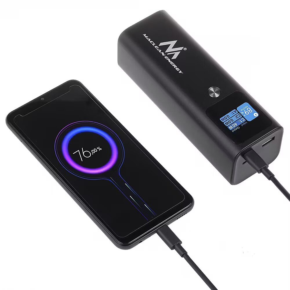 Description - The Maclean MCE335 is the perfect solution for those who need a reliable power source for travel, nature trips or emergencies. With a massive 140 watts of power and 24600 mAh capacity, it's ready to meet your power needs at a moment's notice. The large 24600 mAh capacity is more than enough to charge your smartphone, tablet or other electronic device several times without worrying about a dead battery. The USB-C output of up to 140 watts will also allow you to charge your laptop or MacBook. In addition, the powerbank is compatible with various fast charging technologies, such as Fast Charge and Quick Charge, so you can charge your devices even faster. In addition to the 2 USB-C ports, the powerbank is equipped with a USB-A output with a maximum power of 22.5 watts, so you can charge up to 3 devices simultaneously. The built-in display allows you to monitor the current parameters, such as the charge level in percent and the currently used power of each port. It is possible to blank the screen. The powerbank is designed with durability and strength in mind. Thanks to its sturdy casing and carefully crafted components, this powerbank will survive many adventures and travels. Despite its powerful power, it is relatively light and compact, making it easy to carry in a bag or backpack. You can take it anywhere you need extra energy. This powerbank combines high capacity, powerful power and reliability, making it the perfect companion for travel, field work or emergencies. With it, you can be sure that your devices will always be ready to go, regardless of the circumstances.