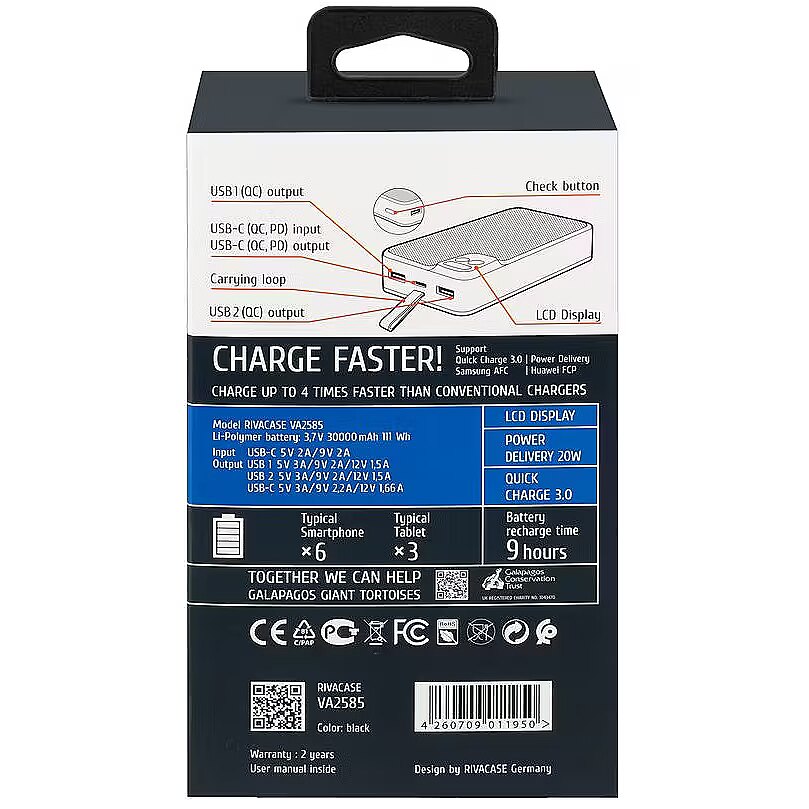 Vendor Homepage - rivacase.com/en/products/power-accessories/portable-rechargeable-batteries/VA2585-30000-mAh-black-EU-QCPD-20W-portable-battery-with-LCD