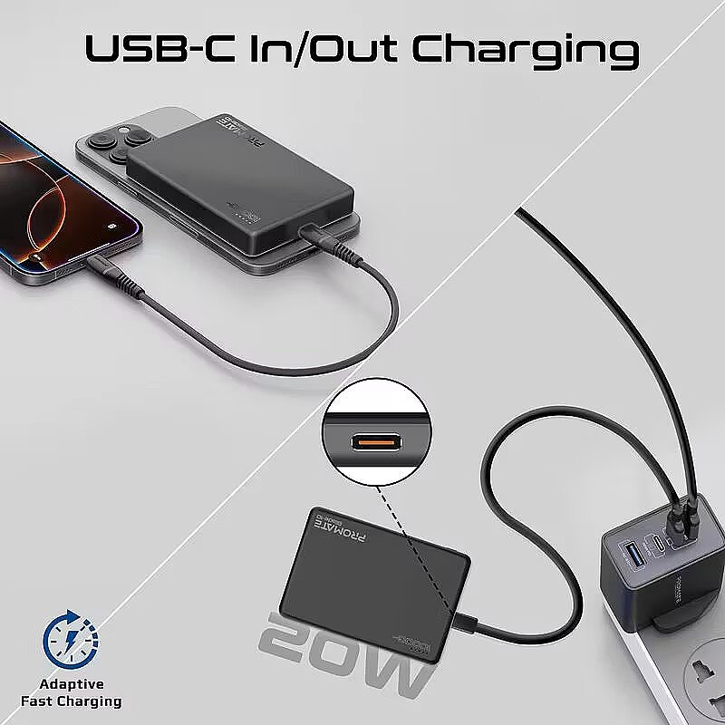 Double-sided 20W USB-C Power Delivery port : Works for input and output in three modes - 5V/3A, 9V/2.22A, 12V/1.67A.