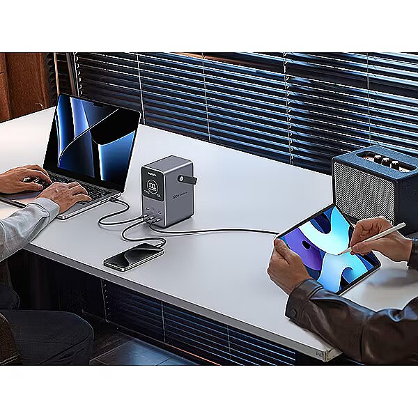 LongDesc - "*USB-C1 ievade: *USB-C1 izeja: 140 W maks: *USB-C2 izeja: 100 W max*USB-C3 izeja: 100 W max*USB-A1 izeja: 22,5 W max*USB-A2 izeja: 22,5 W max*USB-A2 izeja: *Multi-port izeja (USB-C1+USB-C2+USB-C3): 22,5W maks.*Multi-port izeja (USB-C1+USB-C2+USB-C3): 300W Max* Kopējā jauda: 300W Max* Kopējā izeja: 5V=9A/9V=3A/12V=3A/15V=3A20V=5A*Output Capacity: 23000mAh (5V/9A),14000mAh (9V/9A ),10500mAh (12V/9A),8500mAh (15V/9A)6300mAh (20V/15A maks.),4500mAh (28V/5A maks.)*Digitālais displejs*Multiple protection, Superior Safety*Laiks uzlādei: aptuveni 2 stundas (ar PD3.l 140 W lādētājs)*Velementu ietilpība: 48000mAh (6000mAhx8gab.)* Nominālā enerģija: 153,6wh (25,6V 6000mAh)* Nominālā jauda: 23000mAh (TYP 5V 9A)* Izmēri:L145,3xW77xH106,3 (mm)/L5,7xW3,0xH4,2 (collas)"