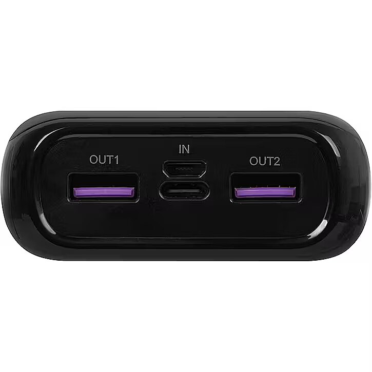 Description - Power Bank 20000mAh PD 20W PB20F Black Battery capacity: 20000mAh Maximum output power: 22.5W (Power Delivery, Quick Charge 3.0, SCP) Number of ports: 4 (2× USB-A, 1× USB-C, 1× micro-USB) Battery type: Lithium-polymer Display: monitors charge level Safety features: Protection against overheating, short circuit, overvoltage, and overload Support for SUPER FAST charging via QC 3.0 and PD This model supports Quick Charge 3.0, Power Delivery, and Huawei SCP, allowing you to charge a smartphone up to 70% in 30 minutes. An ideal solution for people who value speed and full mobility. Thanks to advanced electronics and a high-quality lithium-polymer battery, the power bank provides not only fast but also stable and safe charging without overheating. Universal use - one solution for many devices You can charge almost anything: smartphones, tablets, smartwatches, sports cameras, e-readers, portable consoles, GPS devices, MP3/MP4 players, and much more. A perfect gadget for modern users who value versatility and convenience. The set also includes a USB cable, which allows fast charging of the power bank itself - just plug it in and its ready! Full control and safety The built-in intelligent LED indicator shows the charge level, giving you full control over the energy. No more surprises with a drained device! Durable construction made of fire-resistant PC+ABS material and a full set of protections (against short circuit, overheating, overcharging, and overvoltage) ensure long life and safety for all connected devices. Compact and travel-ready The power bank is designed with mobility in mind - compact format, minimalist casing, and light weight make it easy to fit into a bag or backpack. It meets airline standards, so you can take it on board without worrying about regulations. Quality confirmed by certifications! CE, FCC, and ROHS certifications confirm high quality and compliance with the latest safety standards.