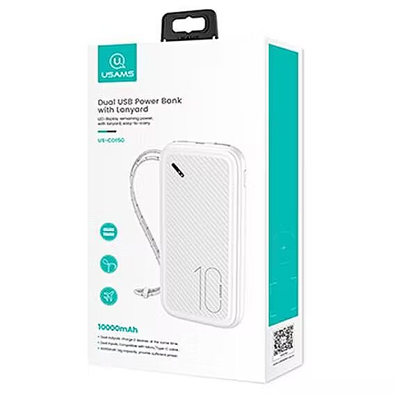 Power banka ir aprīkota ar praktisku izturīgu auklu, ko var uzvilkt uz rokas vai piestiprināt pie mugursomas vai somas, tāpēc varat būt droši, ka tā vienmēr būs līdzi un ka to nesabojās nejaušs kritiens ierīces uzlādes laikā. Ierīce ir pārklāta ar ūdensnecaurlaidīgu slāni, kas papildus aizsargā ierīci pret netīrumiem un pirkstu nospiedumiem.